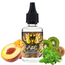 El aroma Ultimate Bahamut une melocotón y kiwi con un delicioso te de menta. Refrescante como pocos.