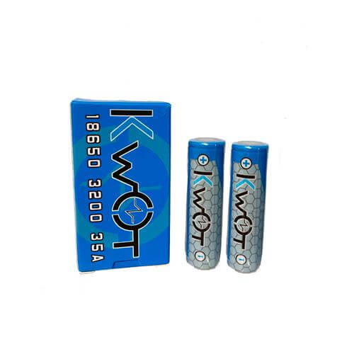 Batería Kwot modelo 18650, con capacidad de 3200 mAh y corriente de descarga continua de 35A.