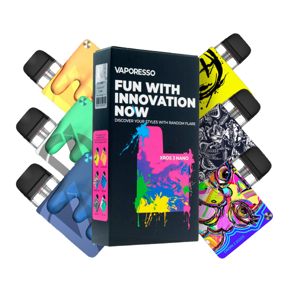 Mystery box kit Xros 3 Nano de Vaporesso donde cada caja es una sorpresa, con un diseño único y que solo lo sabrás al abrirla. Experimenta el emocionante mundo del vapeo con un toque de intriga y un rendimiento excepcional. ¿Qué diseño te depara el destino?